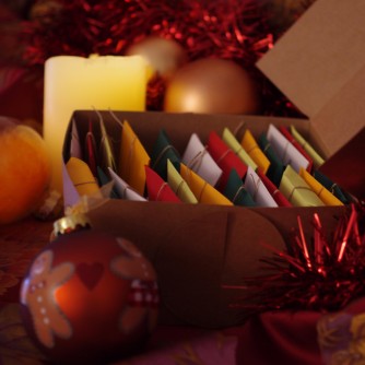 Elodie et Solveig de La Fabrique de Thé ont préparé un joli coffret « Petit thé entre amis » avec 24 petits sachets. Vous pouvez vous servir de ce joli coffret comme calendrier de l’Avent théiné. Il coûte 25€. Vous pouvez l’acheter sur leur tout nouveau site. Et les Lyonnais peuvent passer directement à leur boutique.