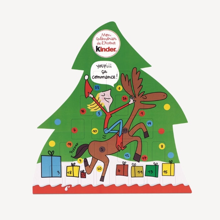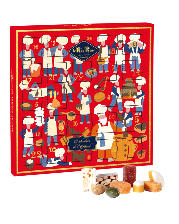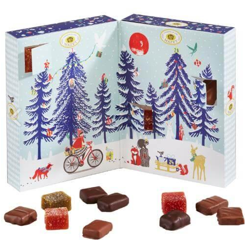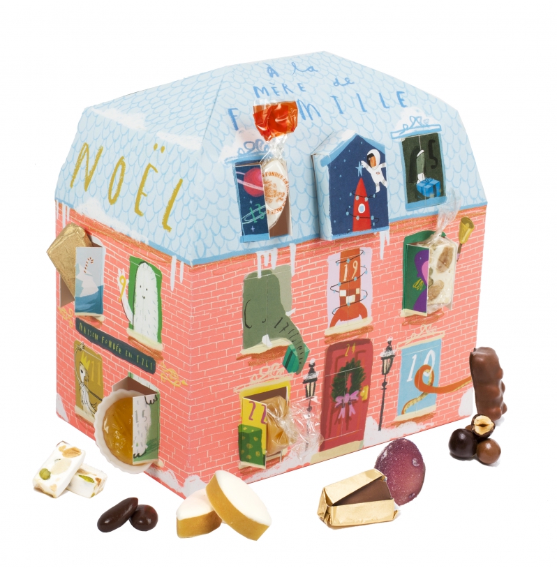 Mais bon, je ne suis pas sectaire et quoi de mieux qu’un petit chocolat pour accompagner son thé. En vrac, quelques petits calendriers chocolatés qui me font bien rêver : la très belle maison-calendrier d’A La Mère de Famille (39€), celui du Roy René avec ses délicieux calissons et pâtes de fruits (12,90€) ou celui du confiseur Mazet (19,90€). Et ne faisons pas les snobs, même si je ne suis pas fan des Kinder, je me contenterais du très joli calendrier dessiné par Soledad Bravi (chez Monoprix pour 5,99€)