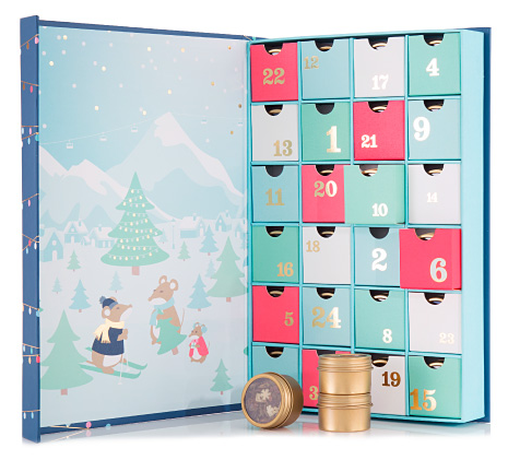 Pour les adeptes du bio, les très bons thés English Tea Shop ont aussi leur calendrier. Dans ces jolies petits cubes, on trouve douze références différentes puisque chacune y est représentée deux fois. Vous pouvez l’acheter sur ce site pour 18,50€.