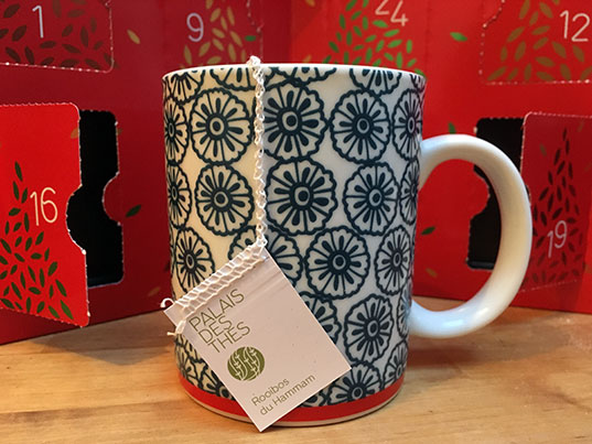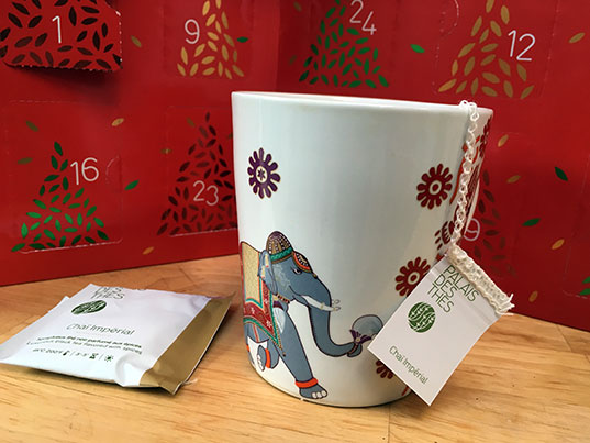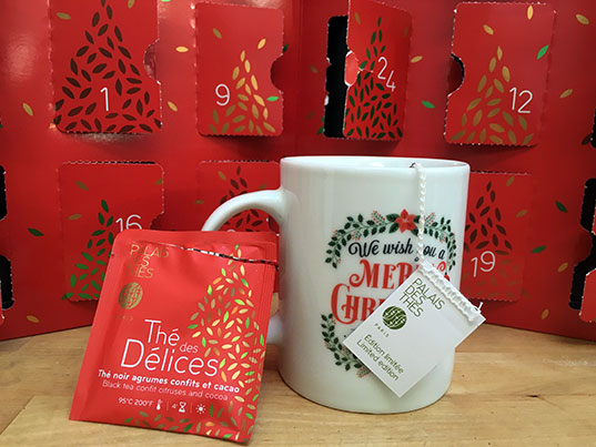 Et pour le 24 décembre, j’ai eu la joie de trouver un sachet de Thé des Délices. Ce thé noir, en édition limitée, est parfumé à la mandarine et au chocolat et il est tout simplement délicieux. Il a un parfait goût de Noël.