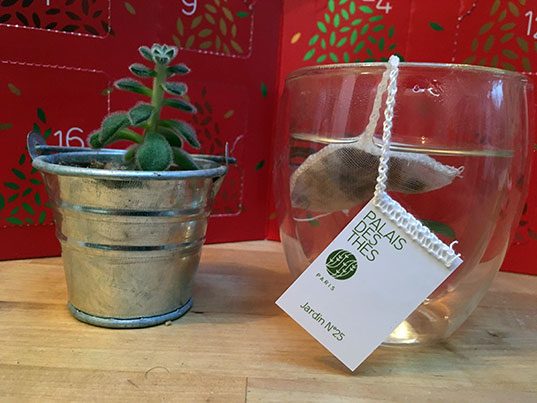 Cette année pour attendre Noël, Le Palais des Thés a eu la gentillesse de m’offrir son calendrier. J’hésitais beaucoup à me l’acheter car c’est une marque que j’aime énormément mais je connais déjà bien la plupart de leurs thés. J’avais donc peu de chance d’être déçue mais également peu de chances d’être surprise.