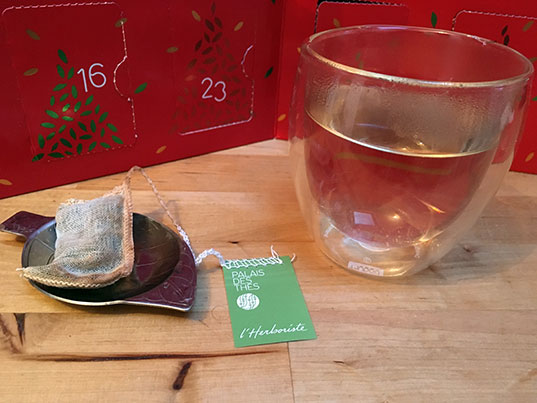 Ce calendrier propose un beau panel, avec des thés natures ou parfumés, noirs ou verts, rooibos ou tisanes. J’ai été très contente de goûter ces thés natures car, naturellement, je vais assez peu vers eux mais certains sont vraiment délicieux.
