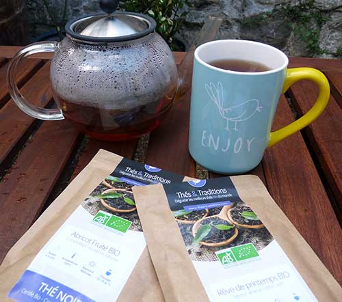 Si vos vacances ont plutôt le goût du sud, essayez ce thé avec des vrais morceaux d’abricot dedans, toujours chez Thés & Traditions ou ce Thé du Jardin de Betjeman & Barton au bon goût de melon.