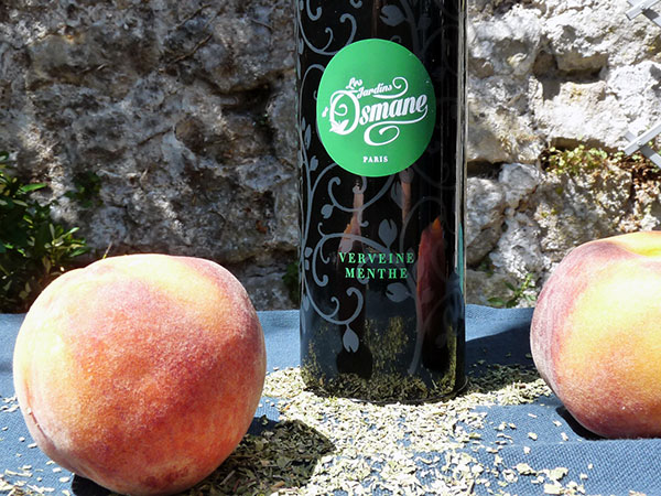 Préparez votre sirop en portant à ébullition 100g de sucre dans 75cl d’eau. Quand ça bout, ajoutez deux cuillères de tisane Verveine-Menthe et laissez infuser hors du feu pendant 5 minutes. Filtrez puis remettre sur feu moyen et ajoutez les pêches. Faites cuire pendant une quinzaine de minutes.