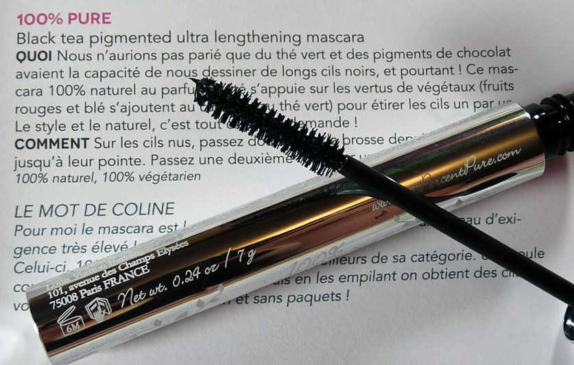 Vous ne voyez toujours pas le rapport avec le thé ? Et bien, dans cette box green, se trouve un mascara, bio évidemment. Toujours pas ? Rooo, faîtes un effort ! Les pigments noirs de ce mascara sont à base de… thé ! On voit toutes sortes de produits de beauté raffermissants ou rafraichissants à base de thé mais c’est la première fois que j’entendais parler d’un mascara. En même temps, c’est vrai que le thé colore beaucoup, les dents comme les tasses.