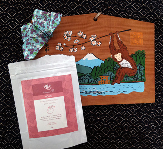 Cette box fait la part belle aux maisons japonaises (et c’est une très bonne idée car je me souviens d’une Thé Box Hokusai qui ne contenait quasiment que du thé Palais des Thés). Tamayura nous raconte l’histoire de Momo avec un thé vert à la pêche. Très bon et délicat, ce thé nous fait bien sentir la pêche mais aussi le thé vert (ça parait évident comme ça mais ce n’est pas toujours le cas). La couleur des feuilles est magnifique, autant avant qu’après l’infusion.