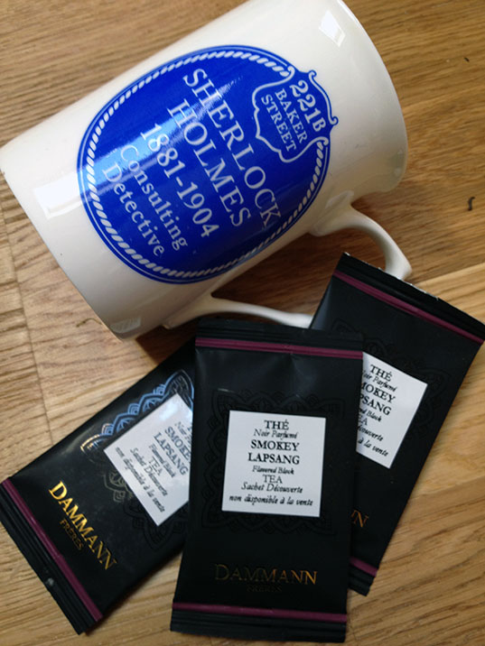 Dammann nous propose son Paul & Virginie, un classique de la maison en hommage au roman de Jacques-Henri Bernardin de Saint-Pierre (très chic comme nom, n’est-ce pas ?). C’est un thé noir vanille, caramel et fruits rouges que j’aime beaucoup et que je suis donc ravie de retrouver. Nous avons également le doit à trois sachets de Smokey Lapsang, le thé culte de Sherlock Holmes. Mais j’ai toujours du mal avec le thé fumé, je ne sais pas si je vais oser l’affronter.