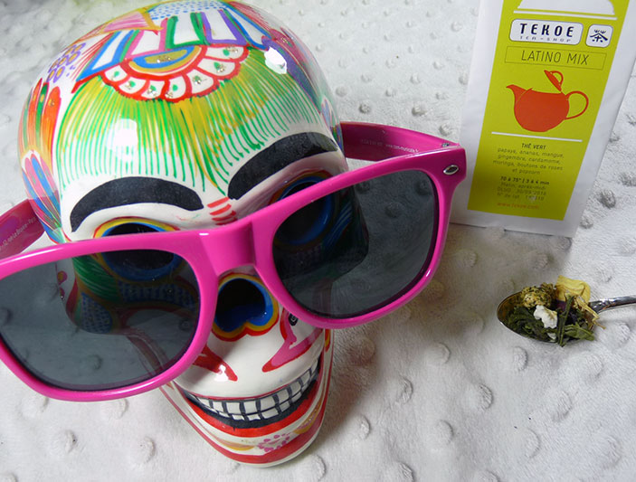 J’ai également testé Latino Mix que j’ai adoré. C’est un thé vert très frais, à base de fruits exotiques (papaye, ananas, mangue) et de pop corn ! Vous avez vu ces énormes bouts à l’intérieur ?