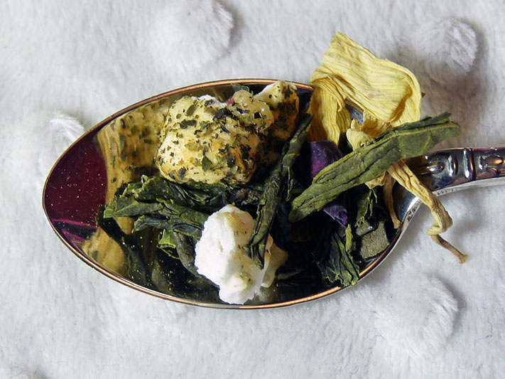 Cette box contient aussi deux fleurs de thés. Je n’ai malheureusement pas de théière transparente mais il va falloir que j’investisse parce que c’est tellement joli quand la fleur s’ouvre. Ca serait gâché de l’infuser dans une théière normale sans profiter du spectacle.