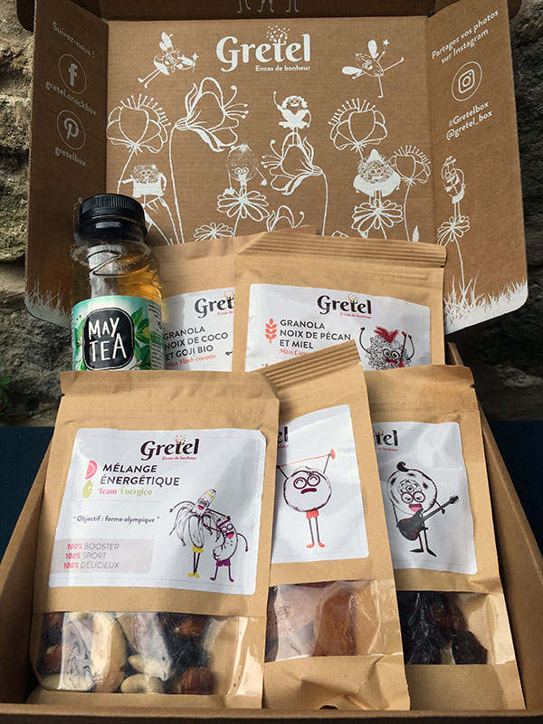 Gretel Box, c’est un petit paquet que vous recevez chaque mois avec cinq encas sains mais gourmands. Fini la pomme ennuyeuse ou le paquet de madeleines culpabilisant !