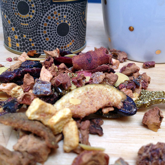 Cette infusion de pomme, datte, cranberry, amande, cannelle et pistache avait tout pour me plaire. Et elle m’a plu.