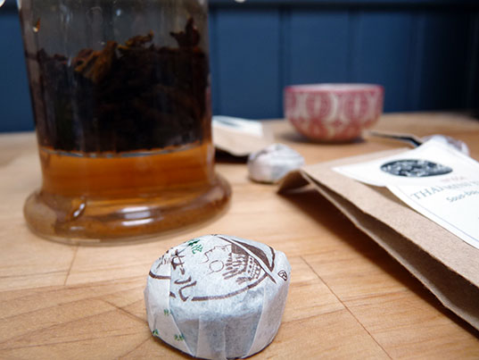 Je n’aime pas le Pu Er (ou pu erh). Ce thé à l’odeur très forte m’évoque toujours la ferme, voire le fumier. Mais Yao et Xin de Goutte de Thé aiment les défis et elles ont pris le pari de m’en faire goûter.