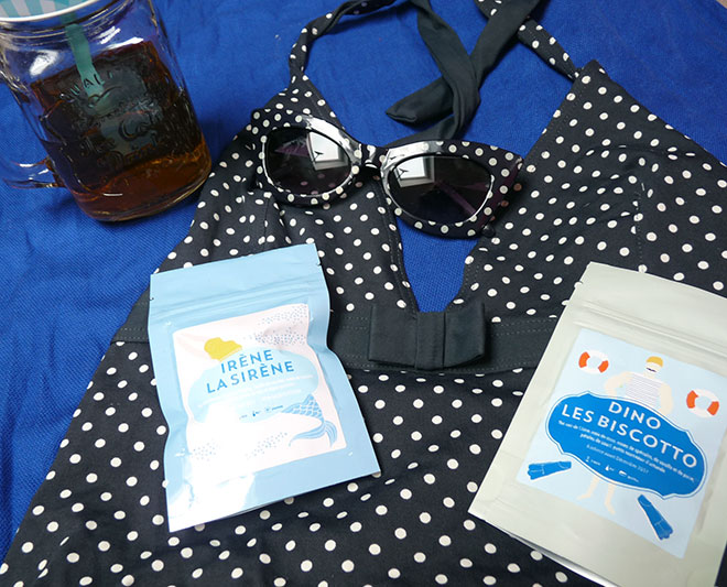 Ce mois-ci, elles sont raccord avec le thème mouillé rétro. Irène la Sirène est composée de thé vert et de Oolong à la menthe et au caramel pour un mélange frais et gourmand. Elle comprend également de la spiruline, une algue très riche en nutriments (je vous rassure, je n’en avais jamais entendu parler moi non plus avant cette box)(bon en fait, ma sœur connaît et dit que c’est dégueulasse).