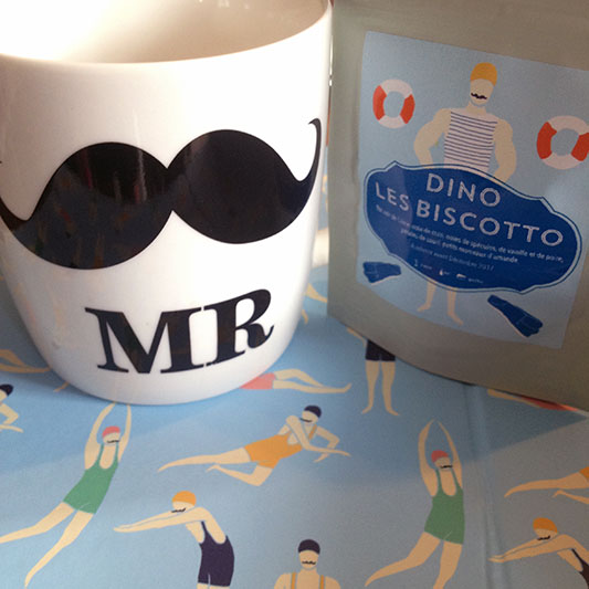 La deuxième création est ultra-gourmande. Dino les Biscotto est un thé noir au spéculos, noix de coco, vanille, poire et amandes. Je n’aime pas du tout le spéculos mais gageons qu’avec sa jolie moustache et son bonnet de bain, Dino saura me séduire.