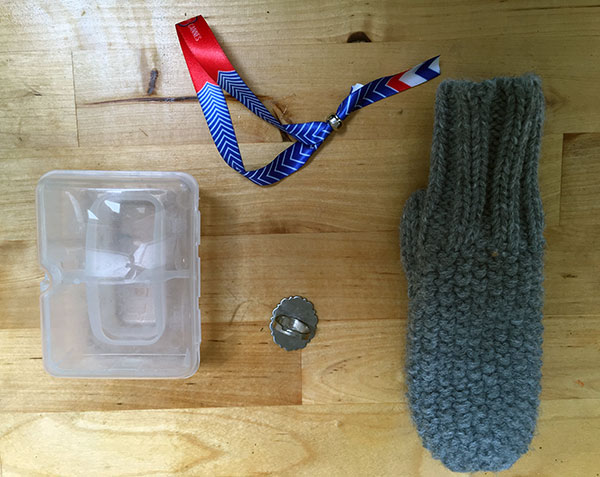 4. Un bracelet événementiel de mon boulot mais que je ne mettrais plus jamais -> poubelle ! Une bague qu’on m’a offerte mais que je ne mets jamais : elle peut plaire à certaines donc je l’ai laissée sur un petit muret où il y a beaucoup de passages. Une moufle retrouvée sous le lit de BabyTea mais à qui il manque sa jumelle : poubelle ! Une boite à tétines qui est bien pratique pour les trimballer et les stériliser mais on en a d’autres et puis j’ose bien espérer qu’on n’en aura plus besoin d’ici quelques semaines.