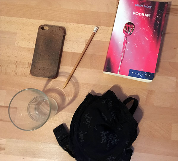 5. Le livre Podium de Yann Moix qui finit dans la boîte à livres. Un soutien gorge tout défoncé : direction la poubelle. Un verre ébréché qu’on gardait on ne sait pourquoi. Une coque de portable qu’une copine m’a filé mais qui est toute abîmée : poubelle aussi. Un pique à cheveux qui avait une belle pierre au bout tombée depuis longtemps : poubelle encore !