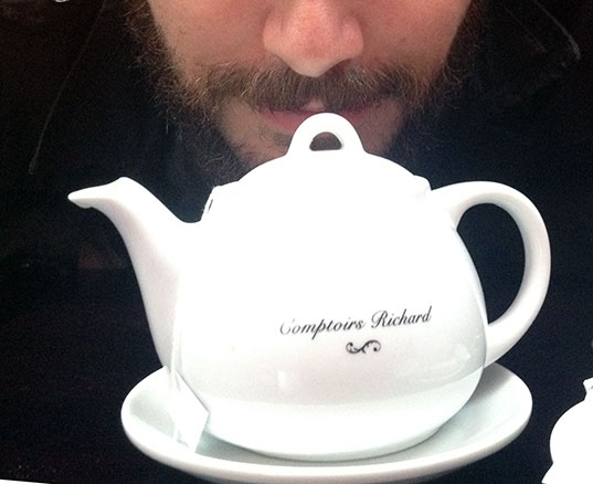 Lui sans qui ce blog n’existerait sans doute plus, voire pas. Lui qui me soutient et croit en moi depuis le début. Lui qui a passé des heures à dessiner mon logo, parce que « tu comprends, la anse c’est mieux si elle est arrondie comme ça » et « là on voit pas assez tes tâches de rousseur » (oui, comme un 2be3, son grand défaut est d’être perfectionniste). Lui qui garde les enfants lorsque je vais à des soirées blogueuses. Lui qui supporte mes 152 mugs et mes 74 boîtes de thé. Lui qui aime tant le thé vert japonais qu’il laisse infuser trop longtemps dans une eau trop chaude parce qu’il faut que ça ait le goût de gazon (chacun ses défauts). Lui qui fait des effets spéciaux sur mes photos avec sa vapote de l’enfer. Lui qui se lève le samedi matin pour ouvrir au livreur qui apporte mes colis de thé. Lui sans qui je serais bien embêtée pour faire des photos quand Envouthé fait une box sur le thème des geeks ou La Thé Box sur le Japon. Lui qui accepte de manger froid le temps que j’instagrame mon plat. Lui qui m’offre des mugs et des tasses même s’il n’en peut plus de ces piles qui s’écroulent dans nos placards.