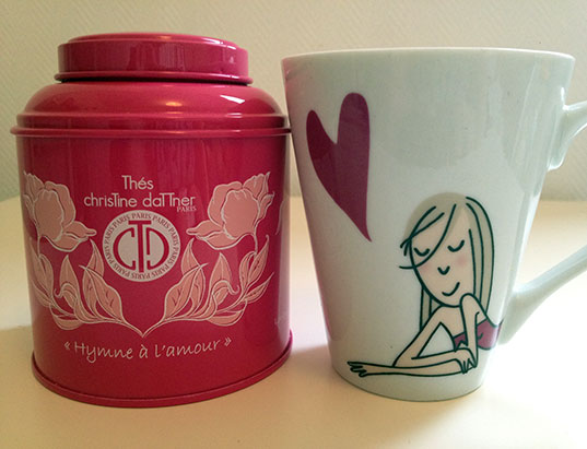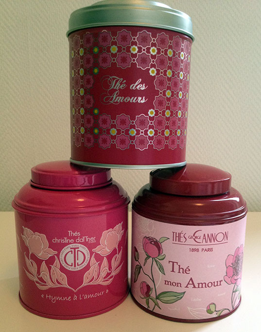 Bon, je ne suis finalement pas une fille si incohérente que ça qui renie ses convictions puisque, pour tout vous avouer, j’ai acheté le thé des Comptoirs Richard l’année dernière, j’ai gagné celui de George Cannon à un concours chez Michele in Wonderland (c’est cool d’être une chanceuse) et Christine Dattner m’a offert le sien (c’est cool d’être une blogueuse). Et n’oubliez pas, pour la Saint-Valentin, faites l’amour pas les magasins !