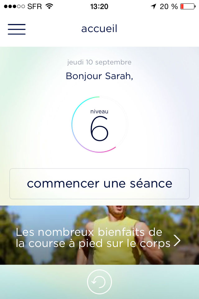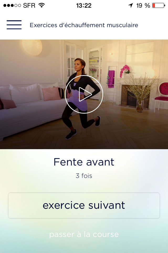 Chaque palier se divise en trois étapes. Avant chaque course, Karine Lemarchand vous propose toute une série d’exercices en vidéo pour vous échauffer. Pendant la course, vous pouvez écouter votre musique (ou rien si vous préférez) et de temps en temps, Karine vous donne un petit conseil. C’est elle qui vous dit aussi quand vous pouvez marcher (là vous l’aimez à balle) ou quand il faut vous mettre à courir (là vous la haïssez profondément). Après la course, vous avez le droit à du gainage et à des étirements. J’essaie de les faire même si après 30 minutes de course, j’ai plus envie de me jeter dans mon canapé que de faire la planche ou une série d’abdos.