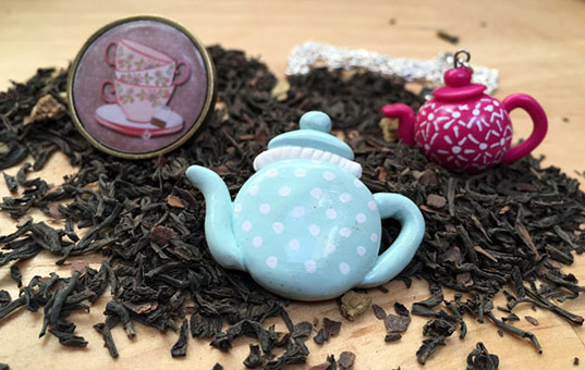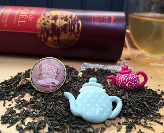 J’adore Instagram parce que j’y ai fait de très jolies rencontres. J’ai découvert Elise, alias Tea For You, pendant le challenge Flow du mois de février dernier. Ses photos pleines de mignonnes créations théinées m’ont aussitôt tapé dans l’oeil. Tea For You réalise avec de la fimo des petits bijoux en forme de théière. Ça ne pouvait que me plaire ! Elle crée aussi des broches ou bagues avec de cabochons en résine, toujours avec des motifs très teaddict ! Alors, en ce mois de décembre, j’ai décidé de lui passer une petite commande d’auto-cadeaux, parce qu’il n’y a rien mieux que des cadeaux à soi-même pour ne pas être déçue, non ?