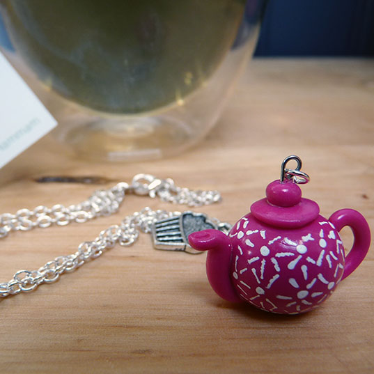 J’ai commencé par des petites déco de Noël, et comme à mon habitude je buvais du thé en même temps que je modelais. L’idée de créer une petite théière est donc venue tout naturellement, au départ pour deux amies qui sont mes plus grandes fans depuis le début (Flo et Alice, si vous êtes par ici ♡). Je me souviens de mes deux premiers modèles créés spécialement pour elles, des petites théières scandinaves avec cookie. Elles ont tout de suite adoré et c’est mon homme et elles qui m’ont donné l’idée de lancer ma boutique en ligne. Teaforyou Bijoux était né 🙂