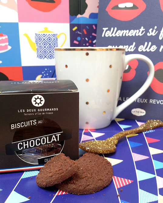 En cadeau, on a des petits dessins pour décorer les pics à cocktails à découper. On retrouve également une cuillère toute pailletée et dorée que j’avais déjà eu dans la box Envouthé de Noël dernier. C’est mon amoureux qui est content d’en avoir maintenant deux, il la trouve absolument immonde. Heureusement, j’ai pu le réconforter avec les toujours délicieux biscuits au chocolat des Deux Gourmands. Bien beurrés mais pas trop sucrés, ils sont juste parfaits. Une guimauve à la fleur d’oranger vient compléter le tout. Texture fondante et goût parfait, elle a su ravir mes papilles. A tel point que je l’ai engloutie avant de la prendre en photo !