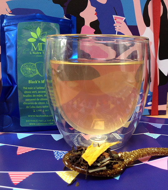 Black’n Mojito est un de mes grands classiques de L’Autre Thé. Très semblable au précédent, le citron vert et la menthe se mêlent ici sur un fond de thé noir. Très chaleureux en version classique, il est surtout réussi en thé glacé pour un cocktail sans alcool qui m’a bien servi cet été.