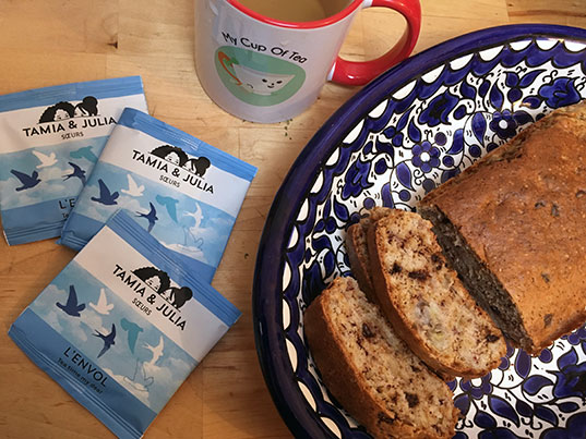Tamia et Julia, les créatrices de La Thé Box, mettant enfin leurs créations en vente. Pour fêter ça, quelques sachets de L’Envol. Le logo est en tout cas très chouette et le concept de sœurs de thé, référence aux frères de lait et symbole d’amitié théinée, me plait bien. Ce thé contient plein de choses mais j’y ai surtout senti les fruits de la passion, joli symbole pour ce lancement.