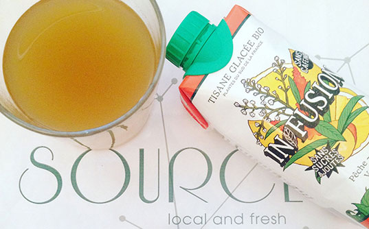 Si vous ne voulez pas du thé mais de la tisane glacée, Infusion vous propose toute une gamme de plusieurs petites briquettes. J’ai essayé celle à la pêche-citron-verveine. C’est bio, sans sucre ajouté et vraiment très bon. A retrouver en magasin bio ou dans les petits restos bobos.
