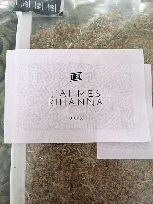 Alors quand j’ai découvert qu’Erbie, le site de plantes bio pour réaliser soi-même ses infusions avait un pack « J’ai mes Rihanna« , j’ai aussitôt craqué. Sous ce nom rigolo se cache un mélange pour lutter contre les douleurs menstruelles ou les syndromes prémenstruels (vous savez quand vous êtes ronchon, que vous avez des boutons plein le front et le ventre tendu comme un ballon)(Nepsie a fait une petite BD à découvrir ici sur ce fameux SPM et je suis bien heureuse de ne pas connaitre ça). Erbie a malheureusement fermé mais j’ai bien noté le contenu de mon pack pour refaire ma tisane moi-même.