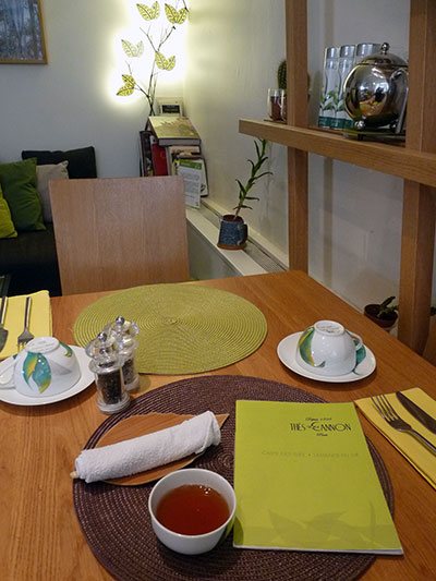 Malgré les travaux environnants, L’Essence du Thé est un lieu extraordinairement calme et zen qui tranche avec l’agitation de Montparnasse et de la rue de Rennes toute proche. On m’accueille avec une tasse de Puer’h de 2006. Manque de pot, je ne raffole vraiment pas de ce type de thé auquel je trouve un goût trop « campagne » (un goût de foin en gros).