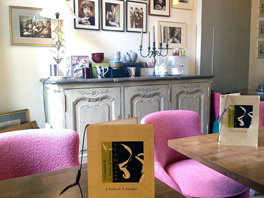 A l’arrière, vous pouvez vous installer sur les confortables banquettes pour déguster un thé accompagné d’un petit gâteau tout en feuilletant un des nombreux ouvrages consacrés au thé mis à disposition.