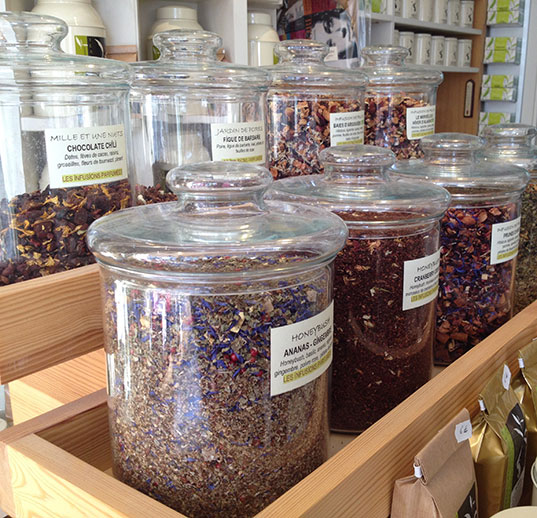 Dans sa boutique, vous pouvez acheter du thé (en majorité de chez George Cannon) mais aussi de la sublime vaisselle (je me suis retenue très fort de ne pas tout acheter) ou des gourmandises, confitures ou biscuits confectionnés par Patrick Loustalot-Barbé.