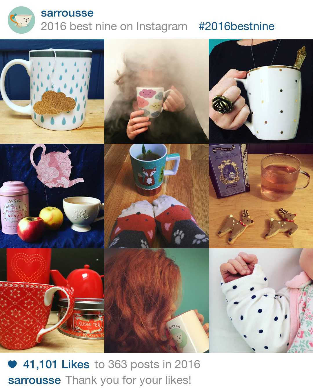 Bref, My Cup of Tea a vraiment connu une belle année et j’espère que 2017 sera tout aussi joli. Avec un vrai travail intéressant, deux bébés et un amoureux à dorloter, ça va être plus compliqué de bloguer mais, promis, je vais essayer de trouver du temps pour vous, pour partager mes découvertes et mes coups de cœur, mes recettes et mes bonnes adresses. Et puis j’ai de plus en plus envie de parler un peu d’autre chose. Au final, vous vous en rendez bien compte, sur ce blog, le thé n’est qu’un prétexte pour raconter ma vie. Alors que peut-être, une fois par mois, si ça ne vous embête pas trop, je vous parlerais de ma vie de maman, de choses bonnes et jolies à grignoter ou de truc sans aucun rapport. Un peu comme aujourd’hui finalement…