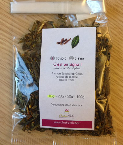 ChakaiClub avait lancé une sorte de box qui s’était malheureusement arrêtée. Mais depuis un petit moment, un système d’abonnement a repris. Alors en blogueuse consciencieuse, je me suis abonnée. J’ai choisi l’abonnement le plus petit possible parce que je suis déjà envahie par le thé.