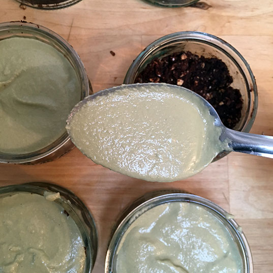 Pour réaliser la crème. Mettez tous les ingrédients dans le blender et mixez jusqu’à obtenir une crème bien lisse.