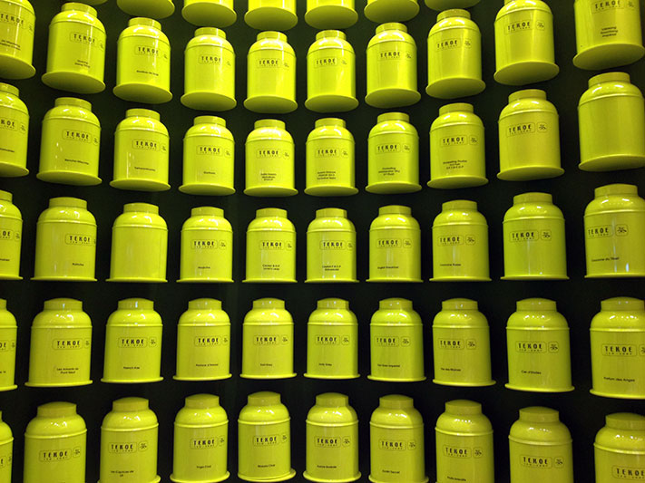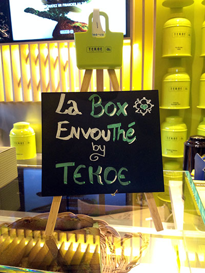 Bref, fin de la parenthèse. Envouthé conviait donc ses abonnés à une rencontre chez Tekoe, leur partenaire de la box d’avril. Je ne suis pas fan de la couleur jaune-vert pétant de Tekoe mais au moins, ça permet de les repérer de loin (pour ne pas trop chercher, sachez quand même que la boutique se trouve dans la Galerie des Fresques entre le Hall 1 et le Hall 2 de la Gare de Lyon).