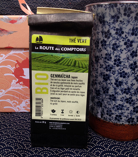 J’ai un faible pour le Genmaïcha, ce thé au riz grillé et mais soufflé. Cette version de La Route des Comptoirs est très réussie. Le goût est bien plus fort que l’odeur ne le laissait deviner et tant mieux.