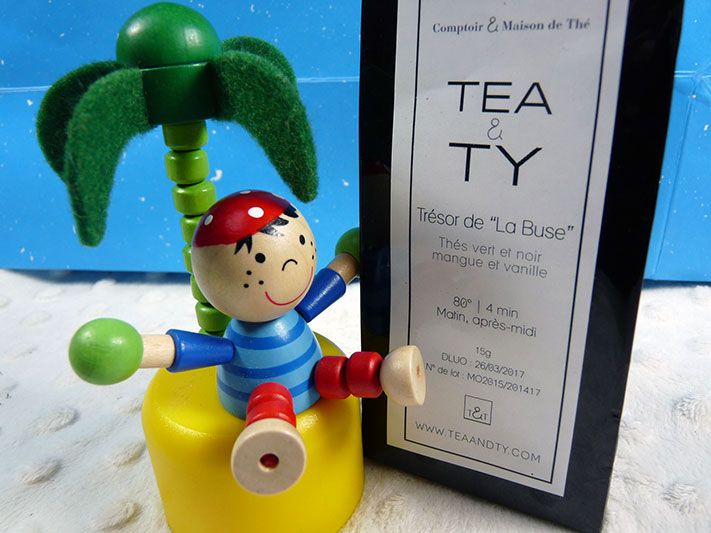 - Trésor de la Buse de Tea & Ty. Tea & Ty, c’est une maison de thé de Rennes que j’avais repéré sur les réseaux sociaux mais sans avoir jamais testé un de leur thé. Et je crois que je vais très vite réparer cet oubli car ce thé pirate à la mangue et à la vanille est, en effet, un vrai trésor. Si vous cherchez un thé à la vanille, passez votre chemin, car elle est très légère. Son goût est très doux et vient délicieusement relever la mangue qui explose en bouche. Un vrai thé exotique pour les flibustiers !