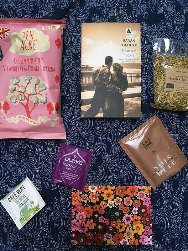 Exploratology fonctionne sur le principe d’un abonnement (ouiiii une box). Tous les mois, vous recevez dans votre boite aux lettres un carton fermé par du joli scotch (c’est tout bête mais j’adore). Et dans ce carton ? Un livre (ou plusieurs selon l’abonnement que vous choisissez), des sachets de thé, des petits bonbons, des jolies cartes, voire parfois un petit cadeau supplémentaire comme du chocolat ou un petit carnet. Le contenu parfait non ?