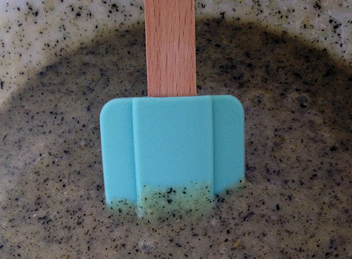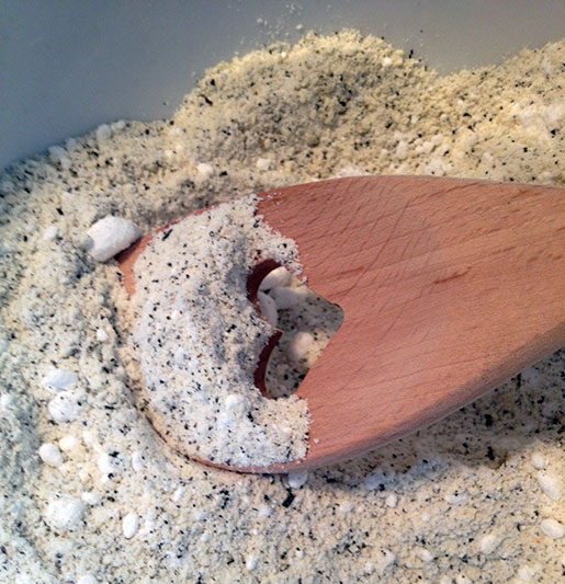 Réduisez le thé au jasmin en poudre (ou en tout petits bouts) à l’aide d’un pilon ou d’un mixeur. Mélangez la farine, le sucre, la poudre d’amandes et le thé.