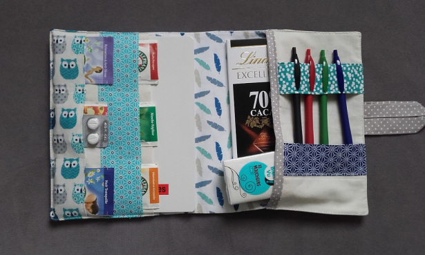 Si vous savez un peu coudre, ces jolies pochettes « kit de survie pour maîtresse » qui font à la fois trousse et pochette à thé devraient être parfaites. Le tutoriel pas à pas est à retrouver chez Crapouilleries. Perso, je suis complètement fan de ce qu’a fait Mes bousilles.