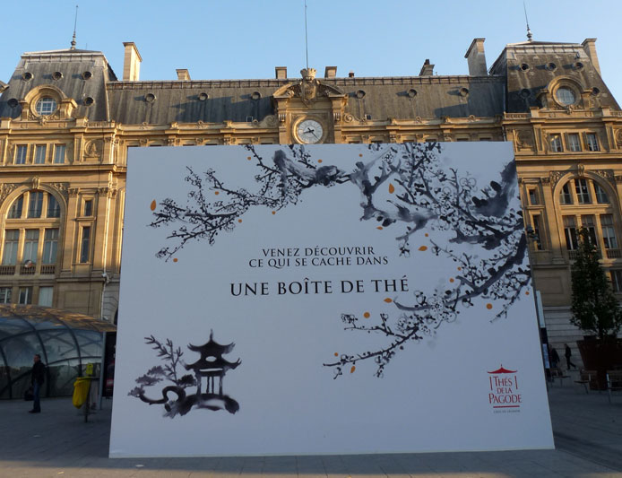 Une bonne journée commence toujours par une tasse de thé. Mais aujourd’hui, pas de thé dès le réveil car j’ai pour mission d’aller visiter la boîte à thé que les Thés de la Pagode ont plantée sur le parvis de la gare Saint Lazare à Paris du 9 au 11 avril.