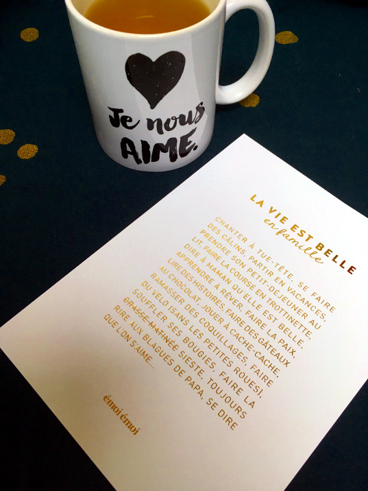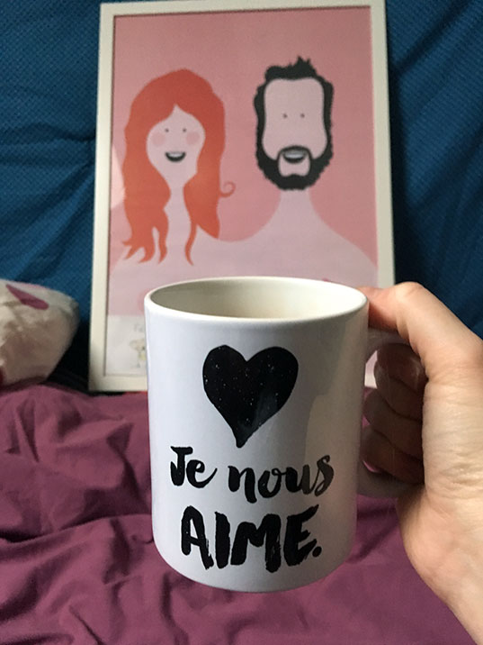 Voilà je voulais vous parler de lui parce qu’aujourd’hui, cela fait cinq ans que l’on s’est embrassé pour la première fois. Ça fait cinq ans qu’il partage ma vie et que je ne peux plus vivre sans lui. Ça fait seulement cinq petites années mais elles ont été si bien remplies. C’est avec lui que je suis devenue adulte et avec lui que je veux devenir vieille. Parce que j’aime voir ses cheveux qui blanchissent et ses rides qui se creusent au coin des yeux. Parce que s’il me trouve belle, même avec mes cernes jusqu’au milieu des joues et mes t-shirt tout tâchés de lait, je n’ai pas peur pour la suite. Avec deux (très) jeunes enfants, on est épuisés et ça devient parfois difficile de se comprendre, de rester calmes, de garder du temps pour nous. Mais quand on est tous les deux assis sur notre canapé, à siroter nos tasses de thé pendant que les enfants font la sieste, je sais que c’est juste un moment difficile à passer et que dans 53 ans, on sera toujours là, à refaire le monde, une tasse fumante entre les mains.