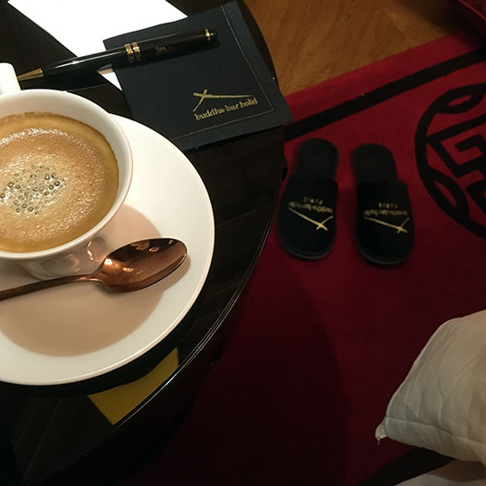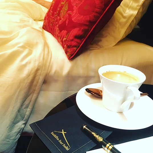 Mais, pardon papa, quand j’ai gagné une nuit au Buddha-Bar Hotel, hôtel cinq étoiles parisien, j’ai accepté.