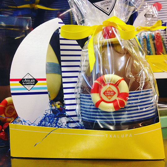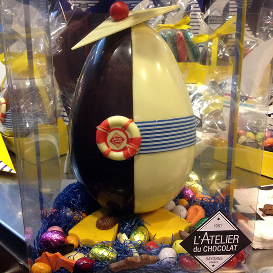 Niveau déco, c’est donc très marin. Les œufs sont dans des bateaux ou avec des petits chapeaux de mousse en chocolat blanc et ont même des jolies ceintures rayées bleu et blanc. On se croirait presque chez Jean-Paul Gaultier.