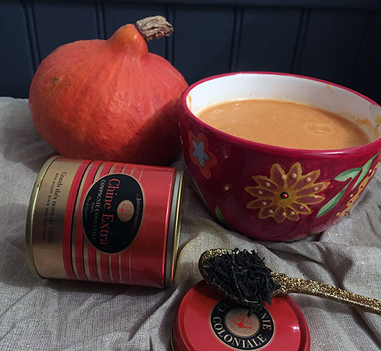 J’adore l’automne (enfin quand il fait beau). Noël approche, les courges remplissent les étals de mon maraicher chouchou, je passe mes journées à boire du thé et de la soupe. Pour réunir tous ces petits plaisirs en un seul, j’ai donc décidé de vous préparer un velouté de potimarron au thé fumé.
